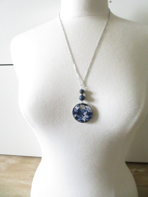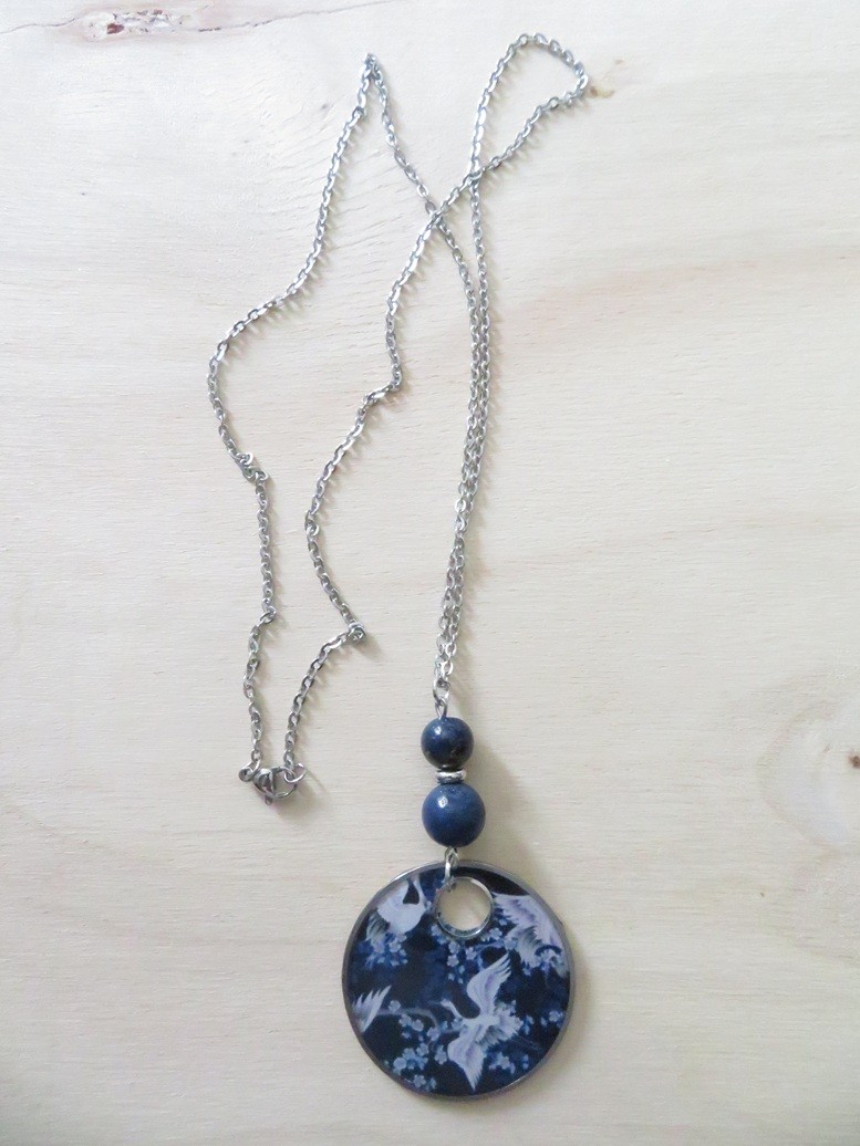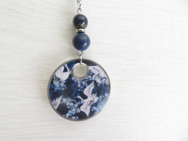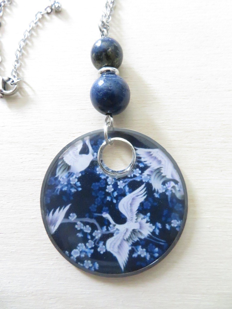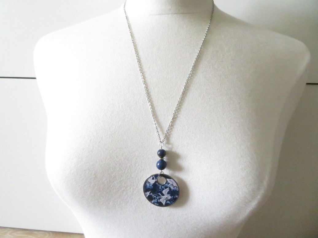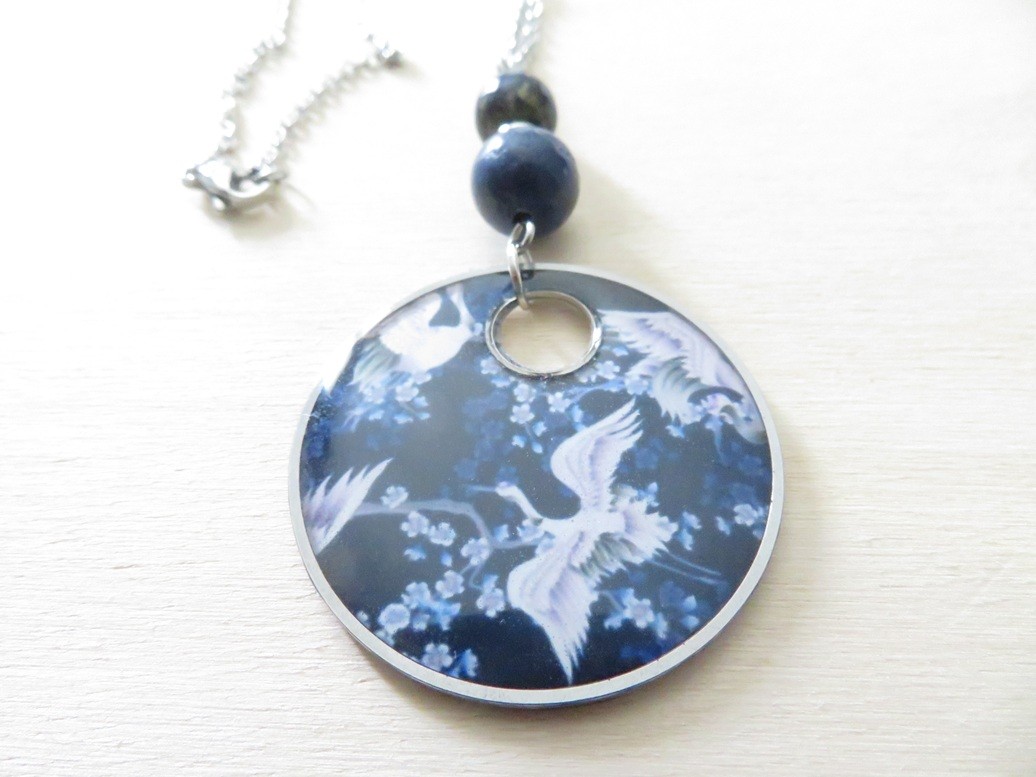 - Pendentif en résine grues japonaises bleu nuit (37 mm)