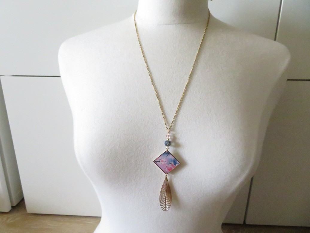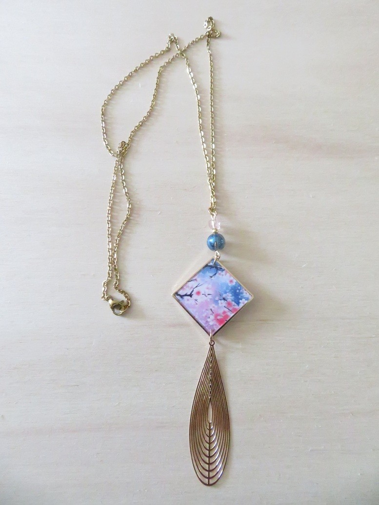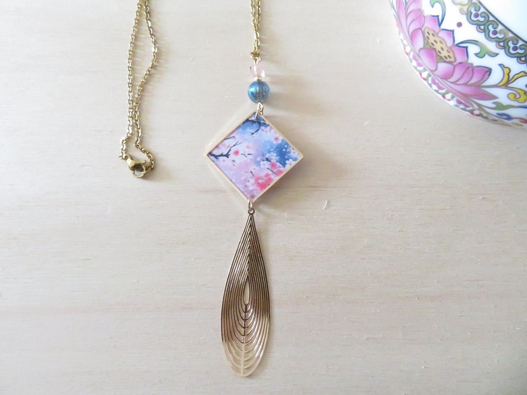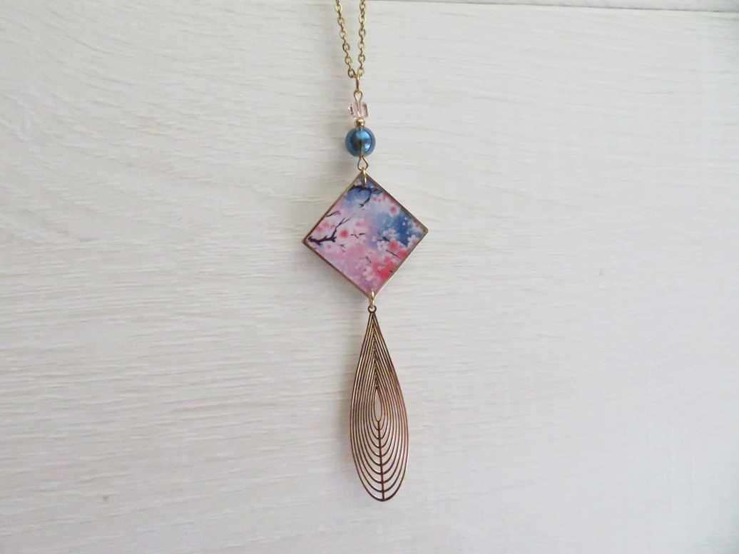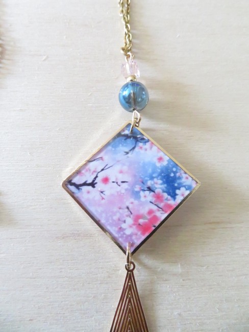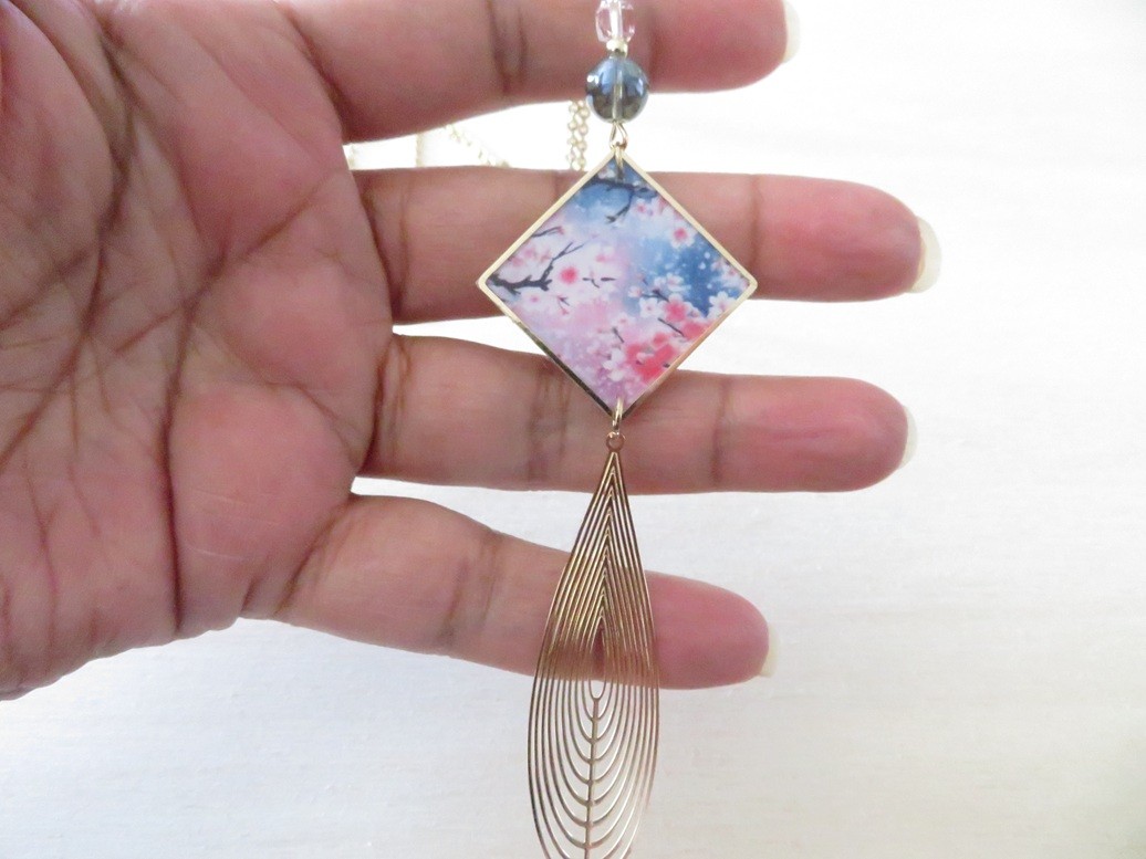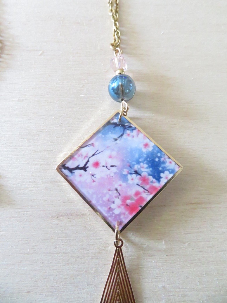 - Pendentif en résine motif fleurs fleurs de cerisier (25 x 25 mm)
