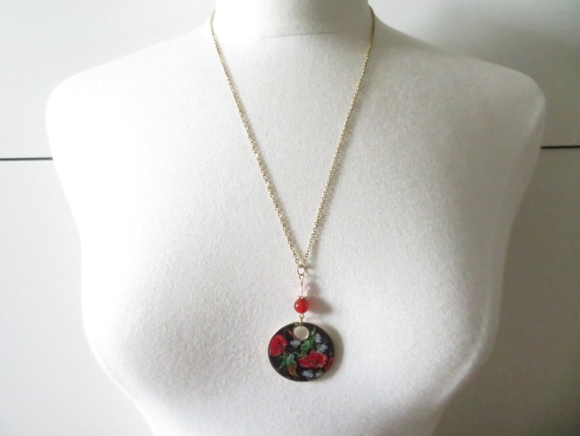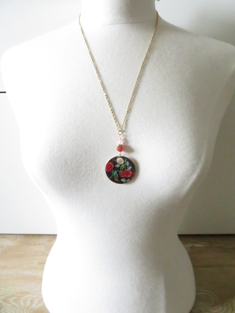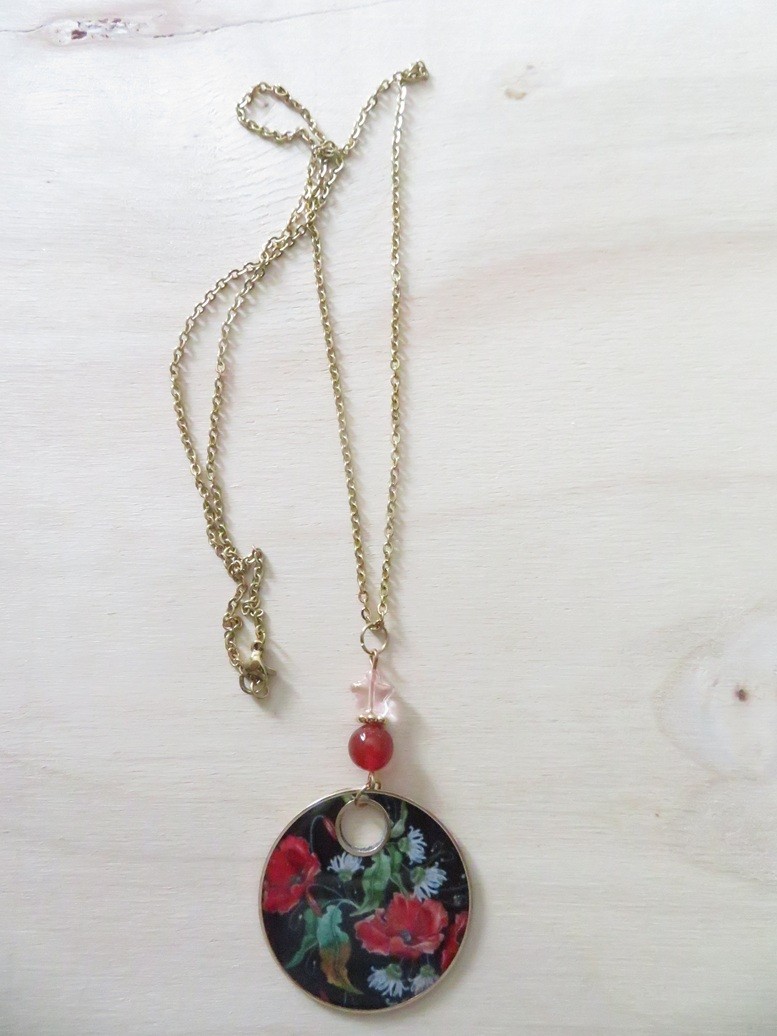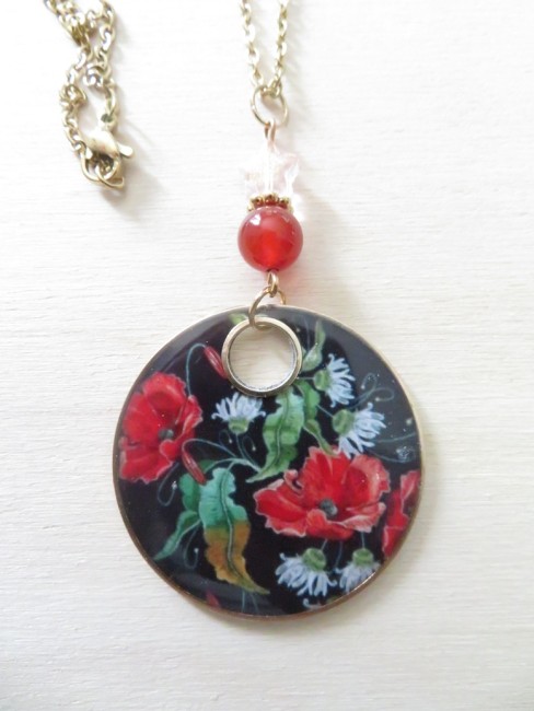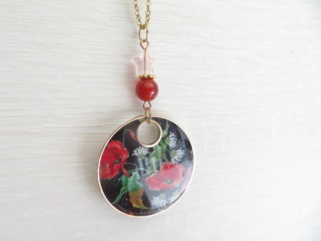 - Pendentif en résine motif coquelicots (37 mm)