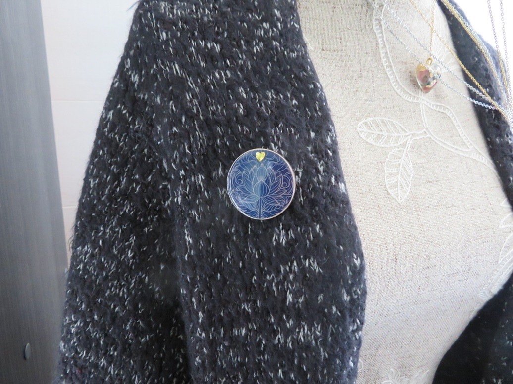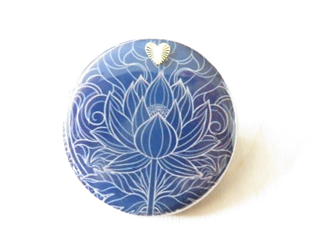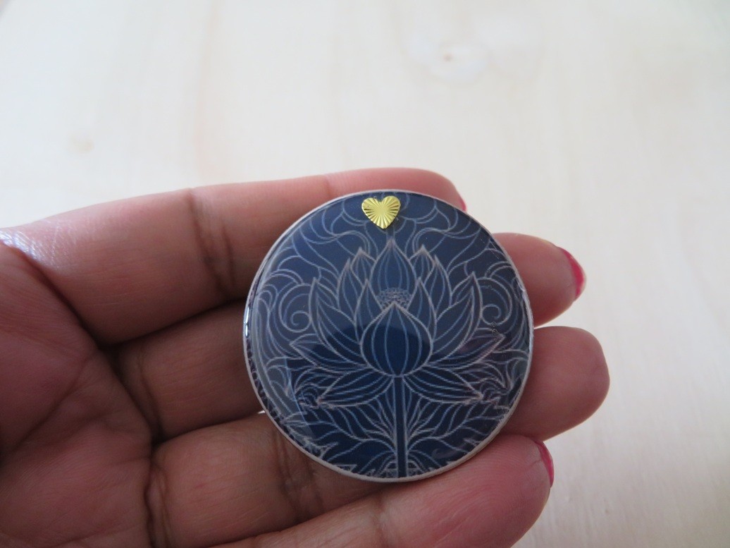 100% réalisé par mes soins, voici une belle broche faite en bois de tilleul et résine avec un beau motif de fleur de lotus.