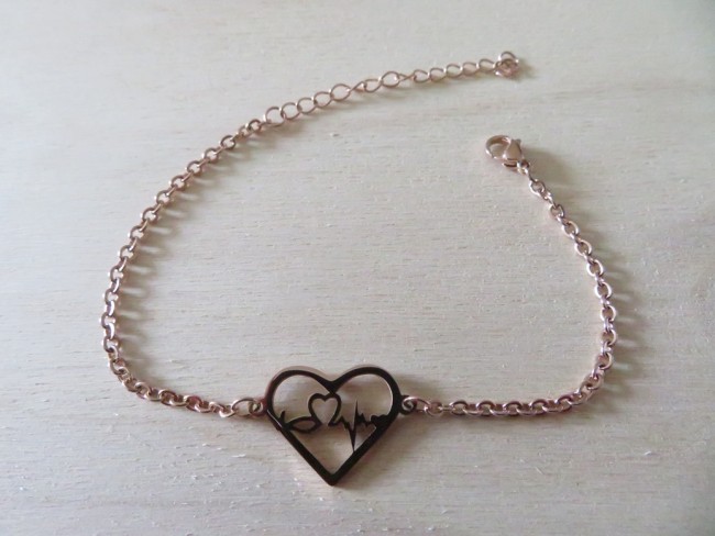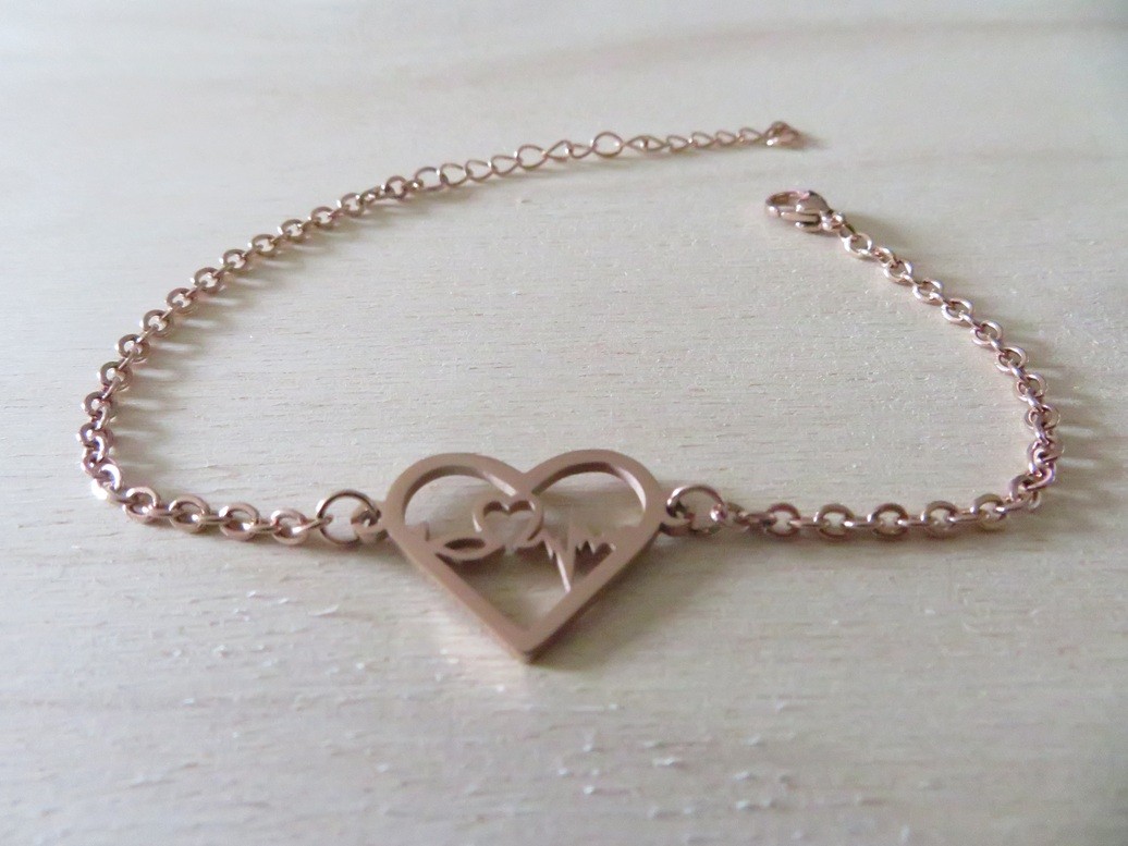 - 1 bracelet chaine avec un beau pendentif cœur en acier inoxydable or rose – Bracelet réglable de 17 cm + 5 cm d’extension