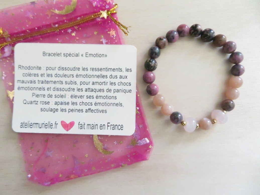 Rhodonite : pour dissoudre les ressentiments, les colères et les douleurs émotionnelles dus aux mauvais traitements subis, pour amortir les chocs émotionnels et dissoudre les attaques de panique