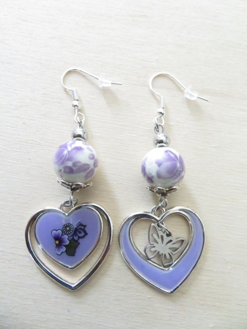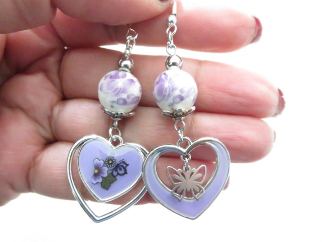 Perles en porcelaine fleurs violet clair