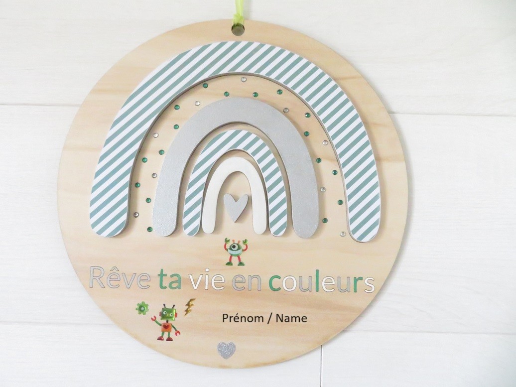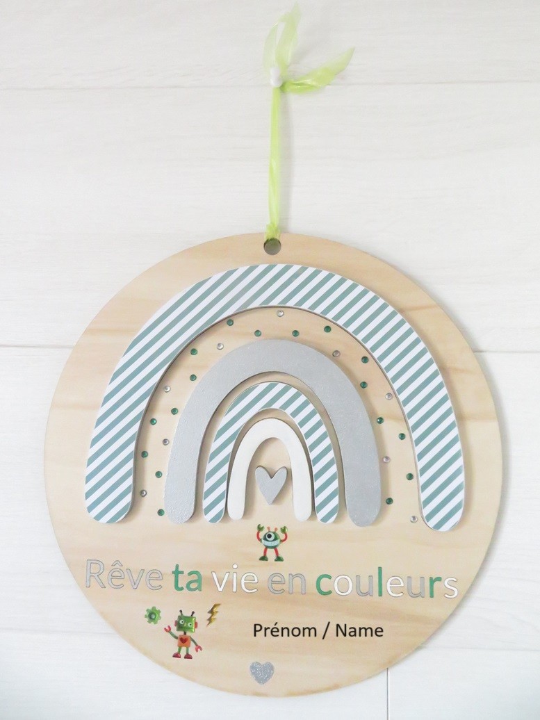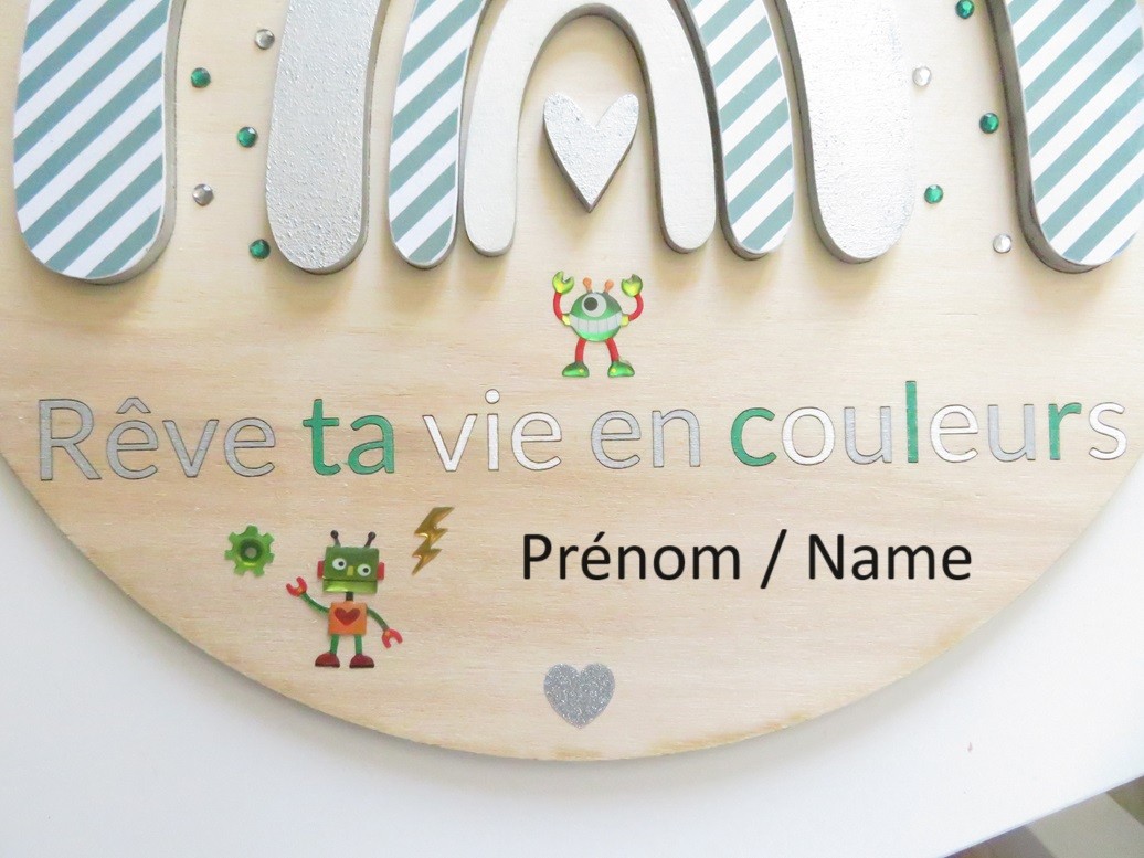 Cette décoration murale peut être personnalisée par un prénom de votre choix (facultatif)