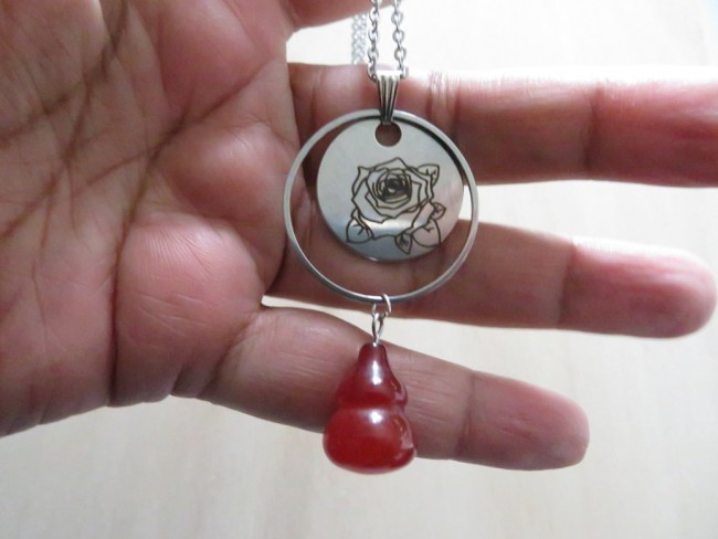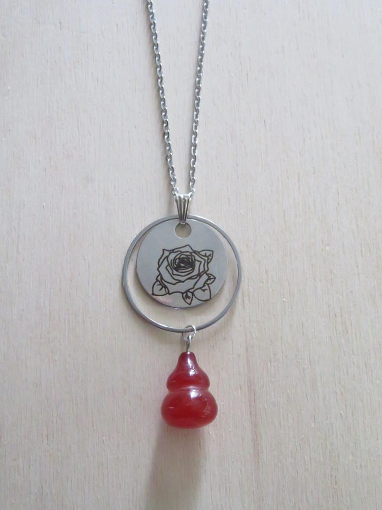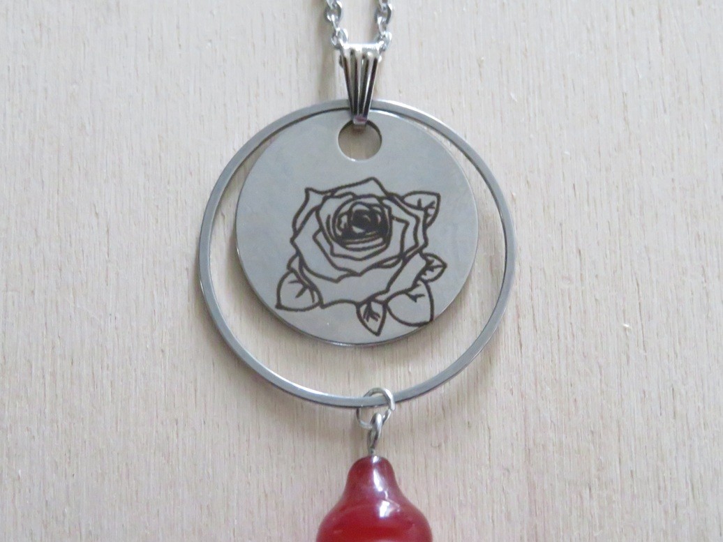 - Médaillon en acier inoxydable avec gravure roses (25 mm)