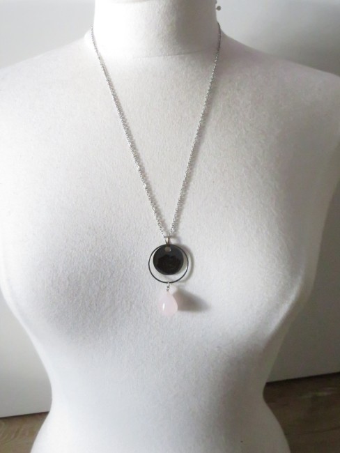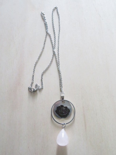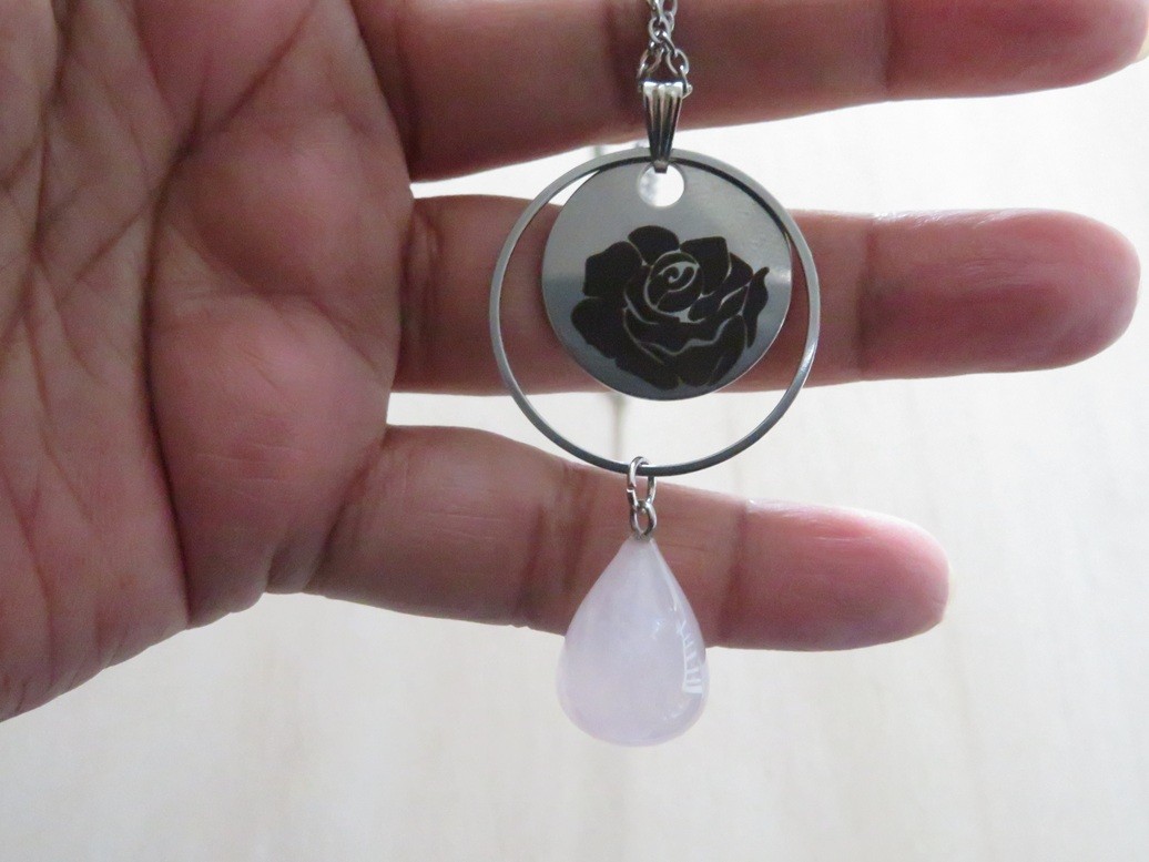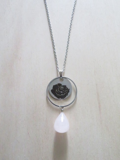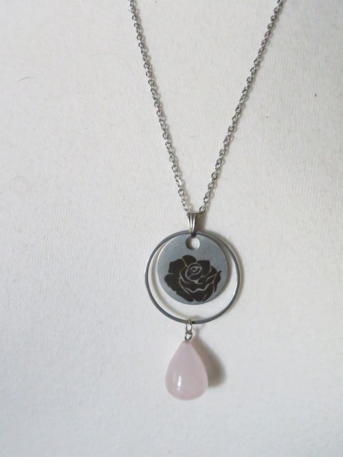 - Pendentif goutte en pierre naturelle Quartz rose