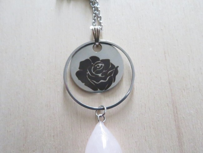 - Médaillon en acier inoxydable avec gravure roses (25 mm)