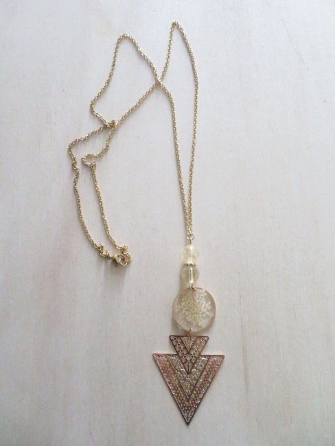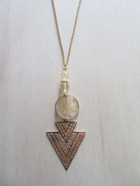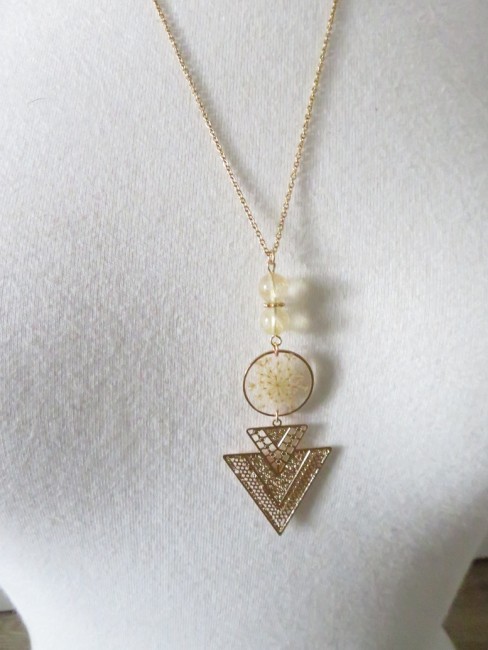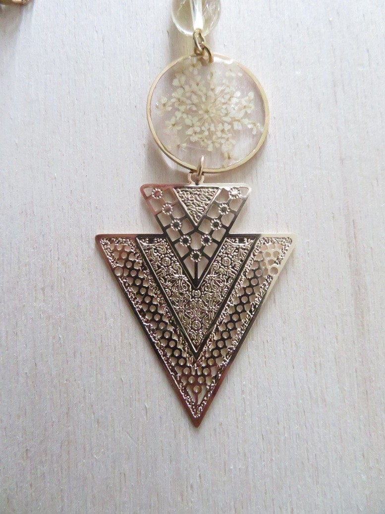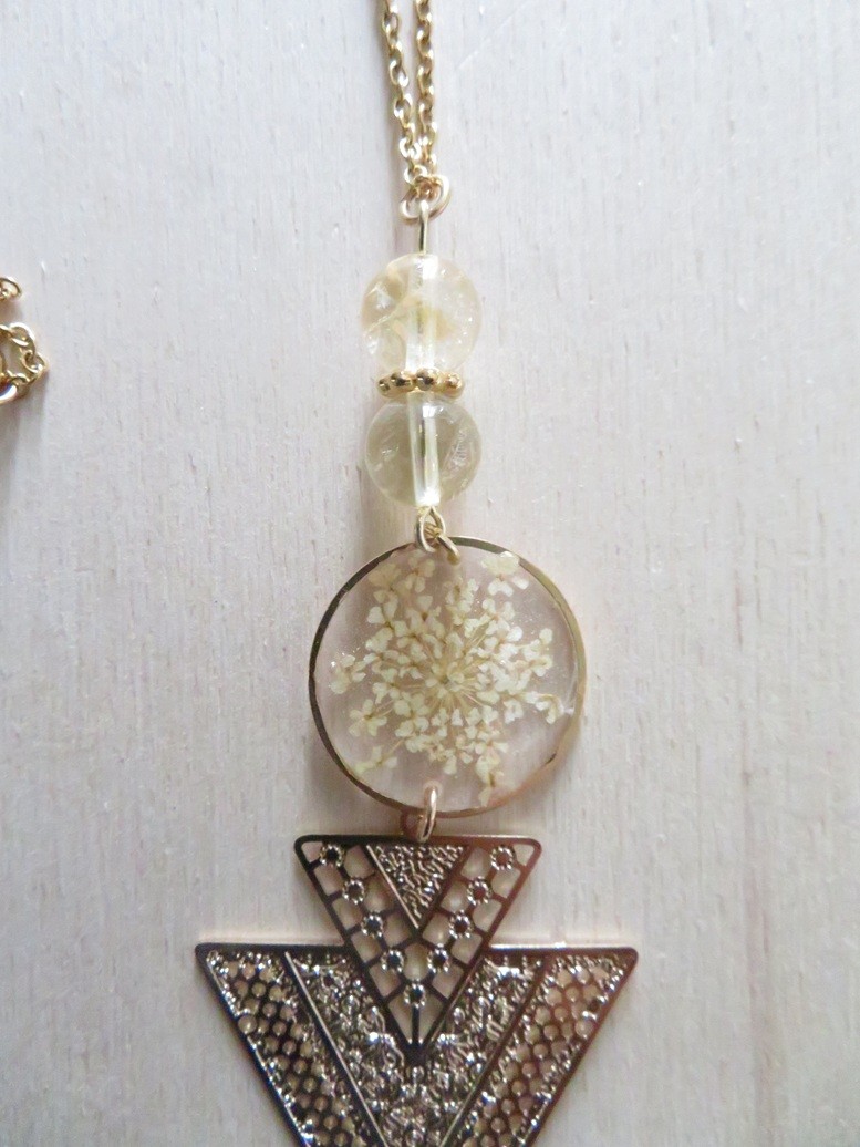 - Pendentif rond en résine incrusté de fleur séchée blanche (15 mm)