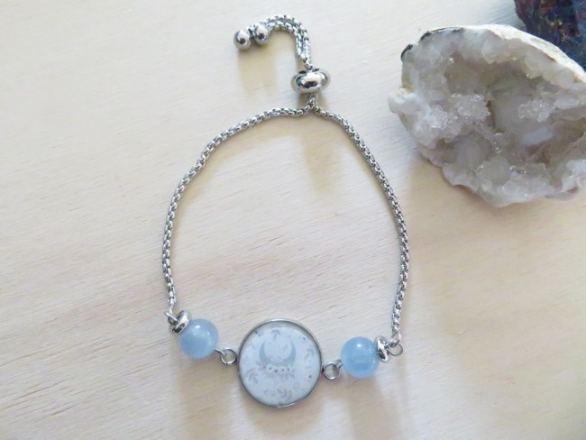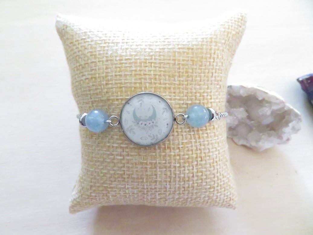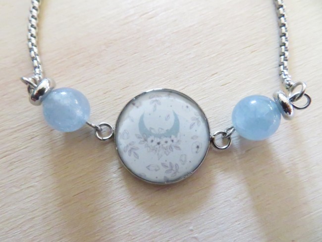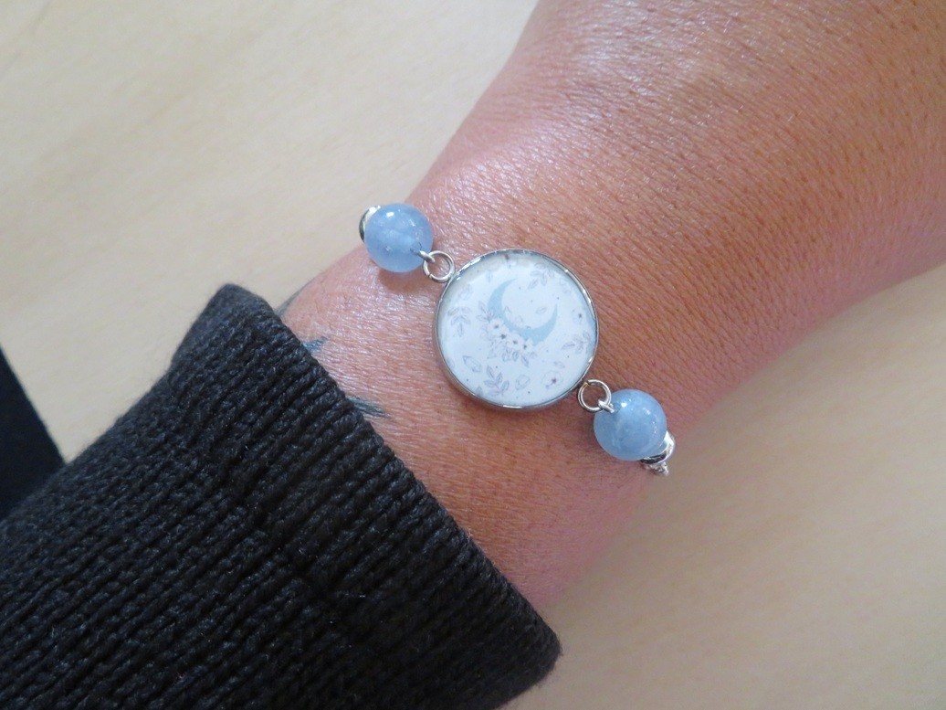 Cabochon en acier inoxydable et résine avec motif lune