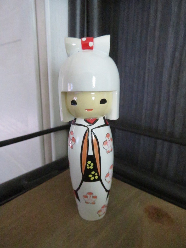 Très jolie Kokeshi fine en bois peinte - poupée de 11,5 cm - elle est en super état