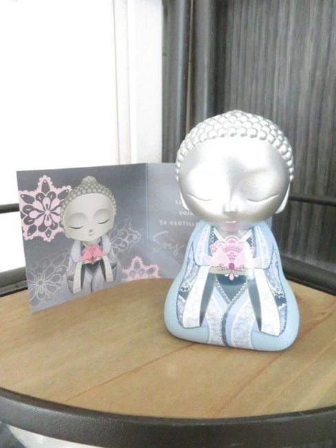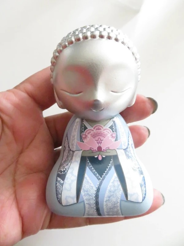 Très belle figurine Little Buddha bleu clair et argent avec sa boite d'origine - en super état comme neuve