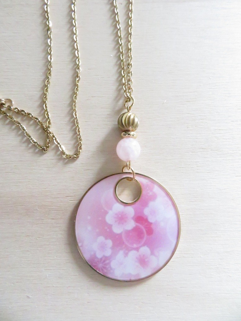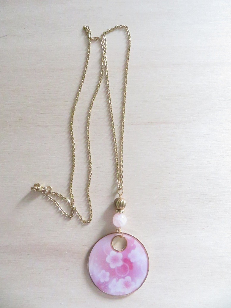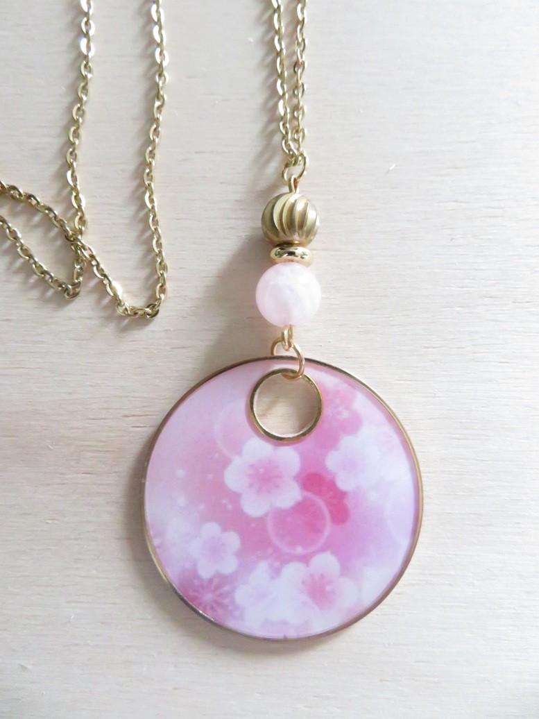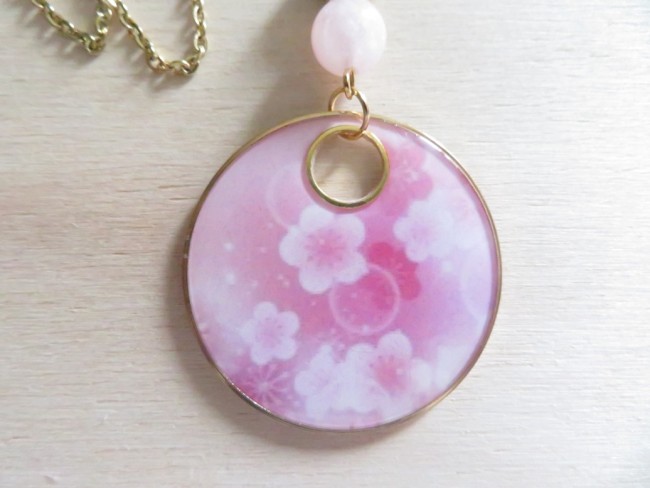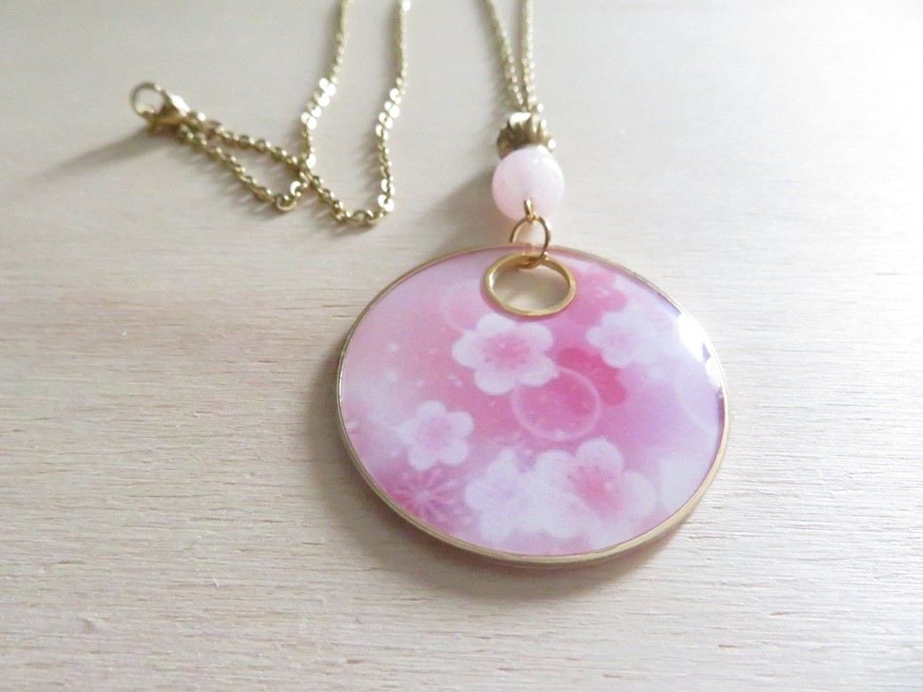 - Rond ajouré fait en résine avec un beau motif de fleurs de sakura rose clair - dimension : 3.8 cm