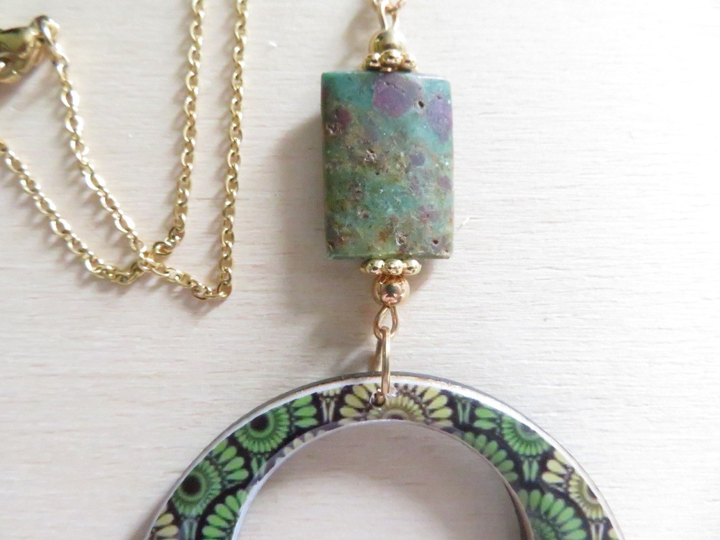 - Perle en pierre naturelle Rubis sur zoïsite verte (18 x 15 mm)