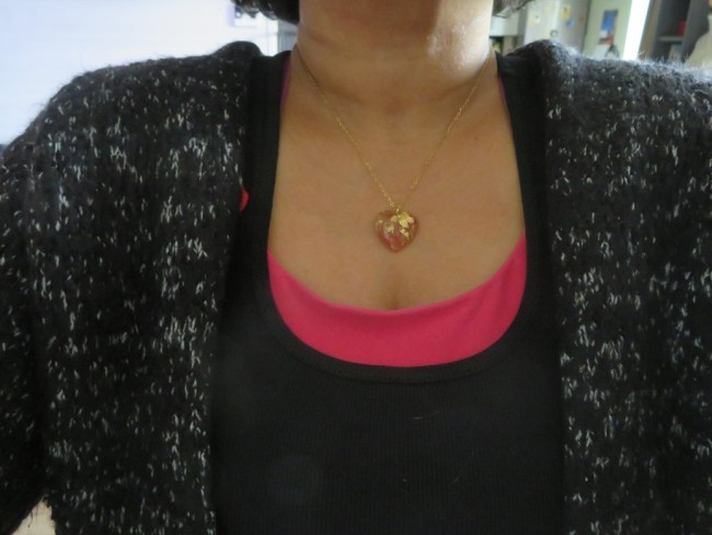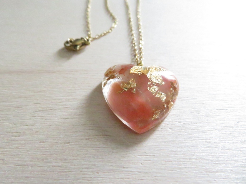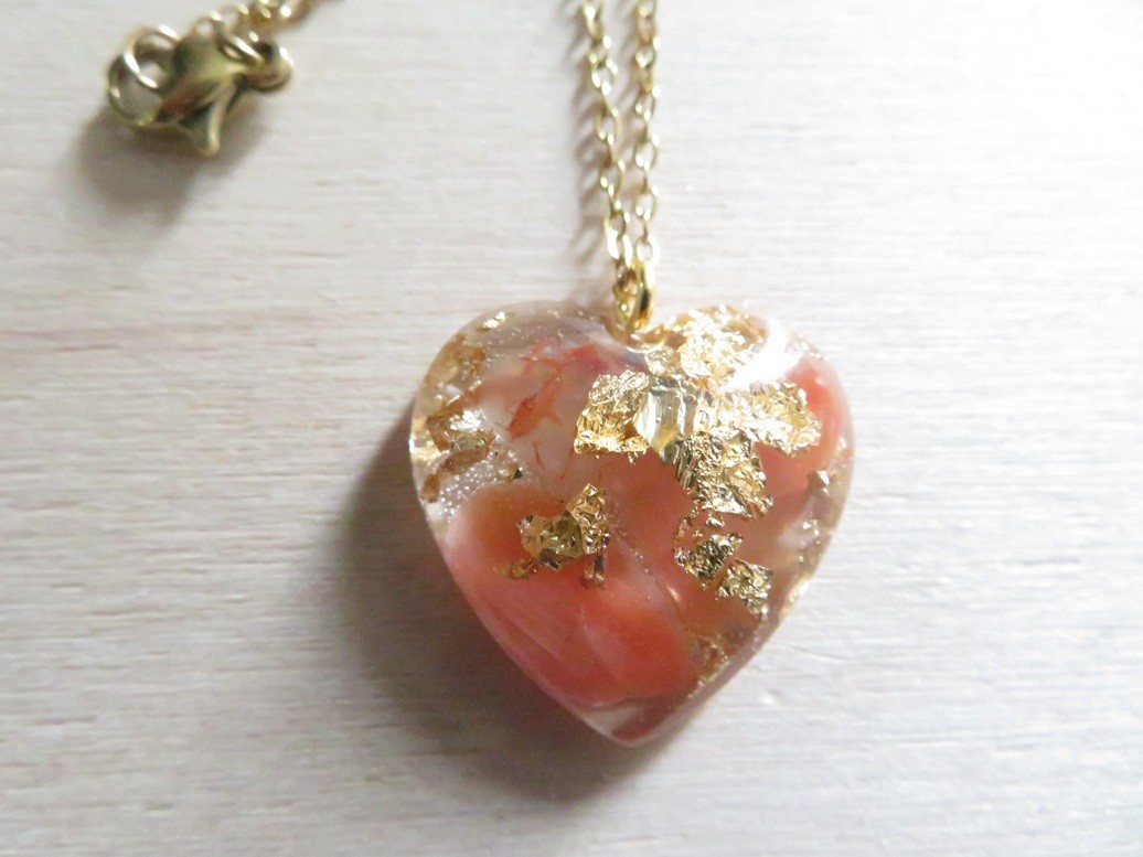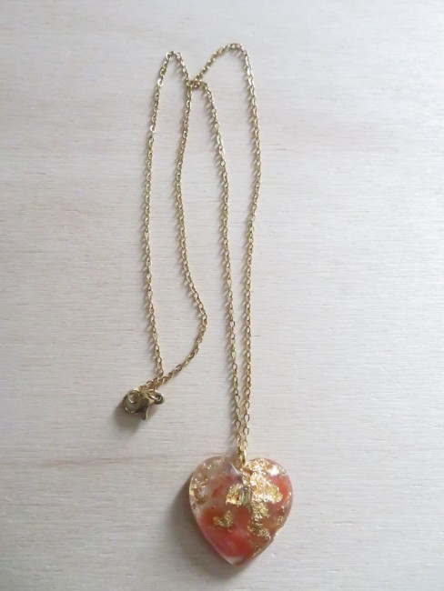 - Coeur fait en résine incrusté de pierres naturelles Cornaline et flocons or - dimension : 2.5 x 2.5 cm