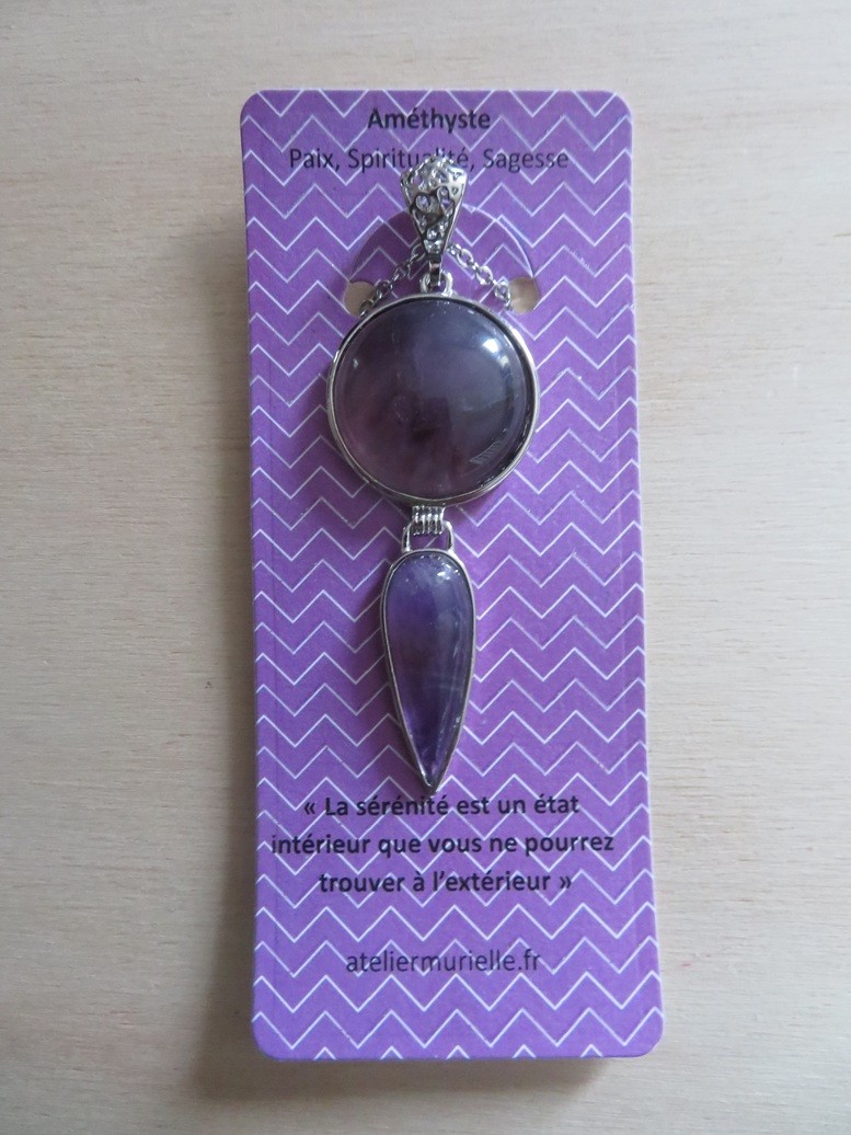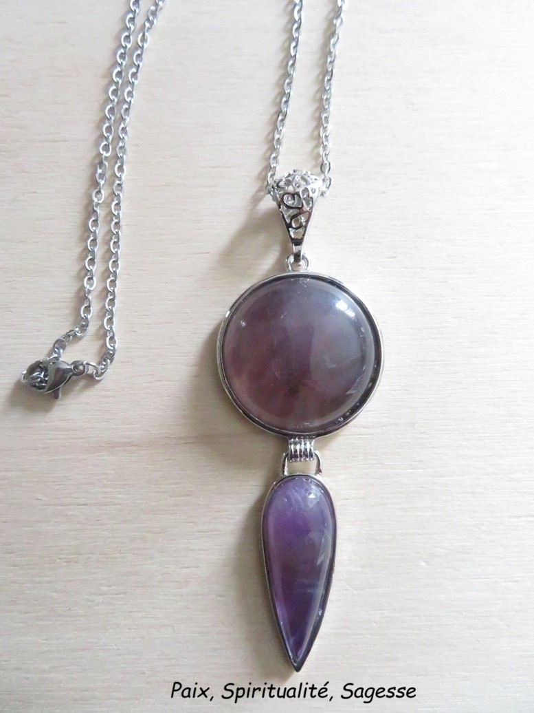 - Pendentif rond et goutte en pierres naturelles Améthyste - dimension : 7.8 cm