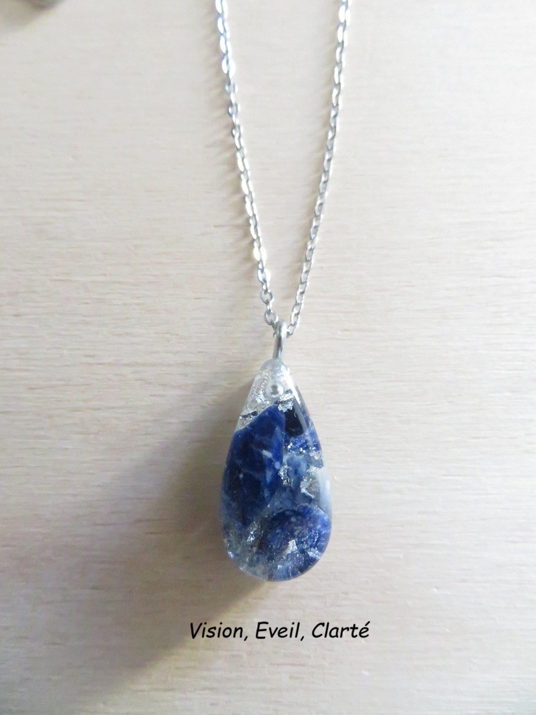 - Goutte fait en résine incrusté de pierres naturelles Sodalite et flocons argent - dimension : 2.4 x 1.2 cm