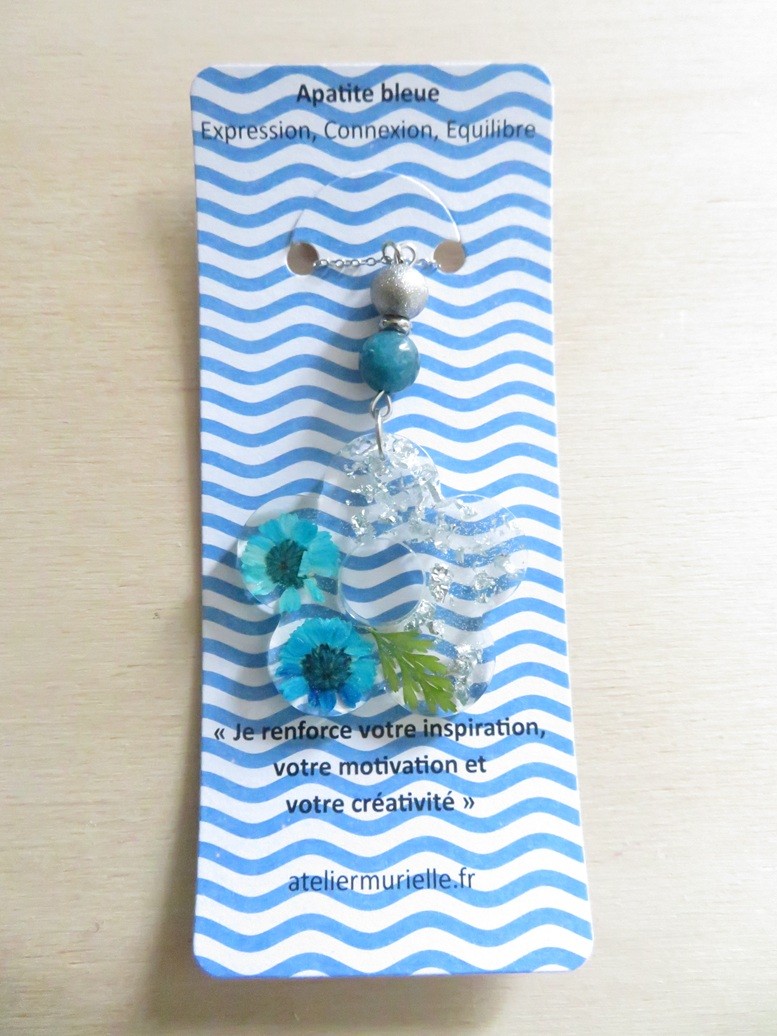 - Fleur faite en résine incrusté de fleurs et feuille séchées, flocons argent