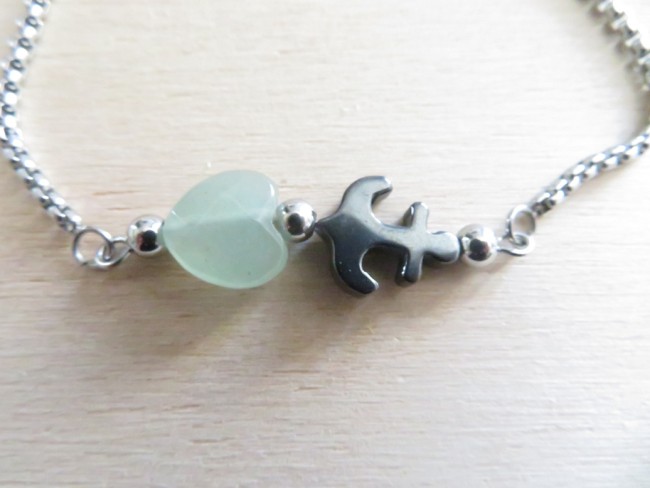 Perle en pierre naturelle en forme de coeur Aventurine verte