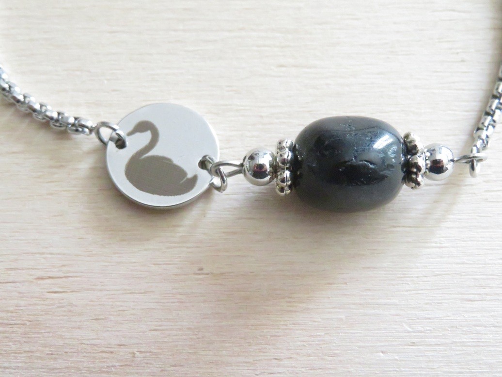 Petite médaille en acier inoxydable gravé d'un cygne