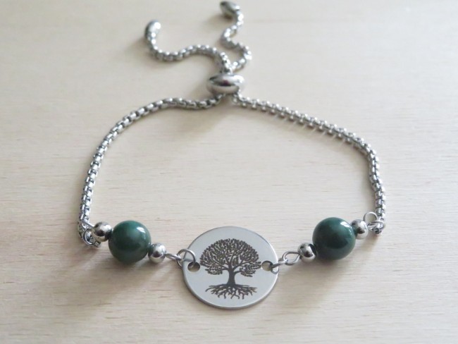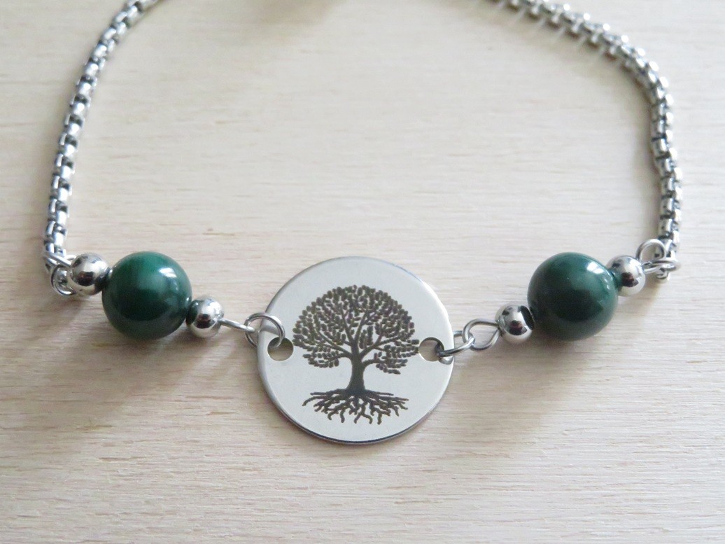 Médaille en acier inoxydable gravé d'un arbre de vie