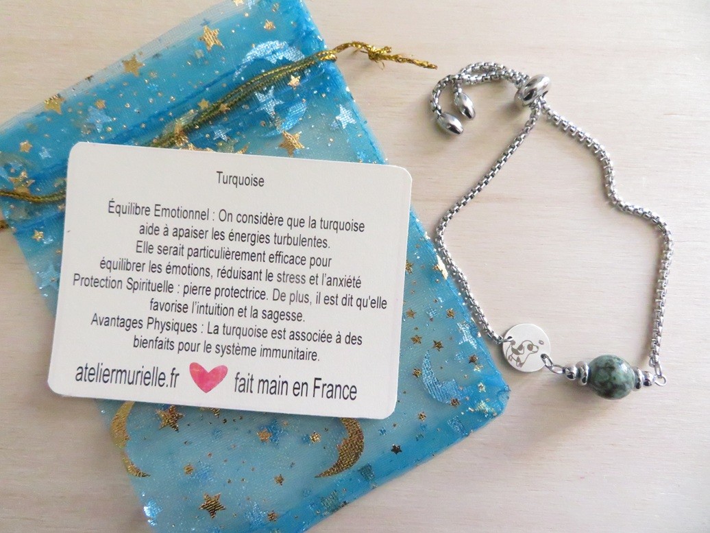- Équilibre Emotionnel : On considère que la turquoise aide à apaiser les énergies turbulentes. Elle serait particulièrement efficace pour équilibrer les émotions, réduisant le stress et l’anxiété. Sa couleur apaisante serait propice à la méditation et à la concentration, permettant ainsi une meilleure connexion avec soi-même.