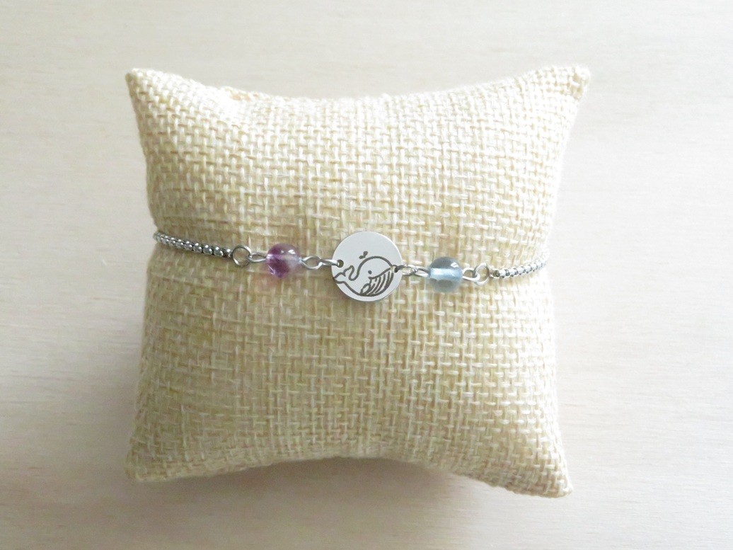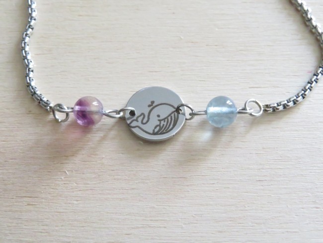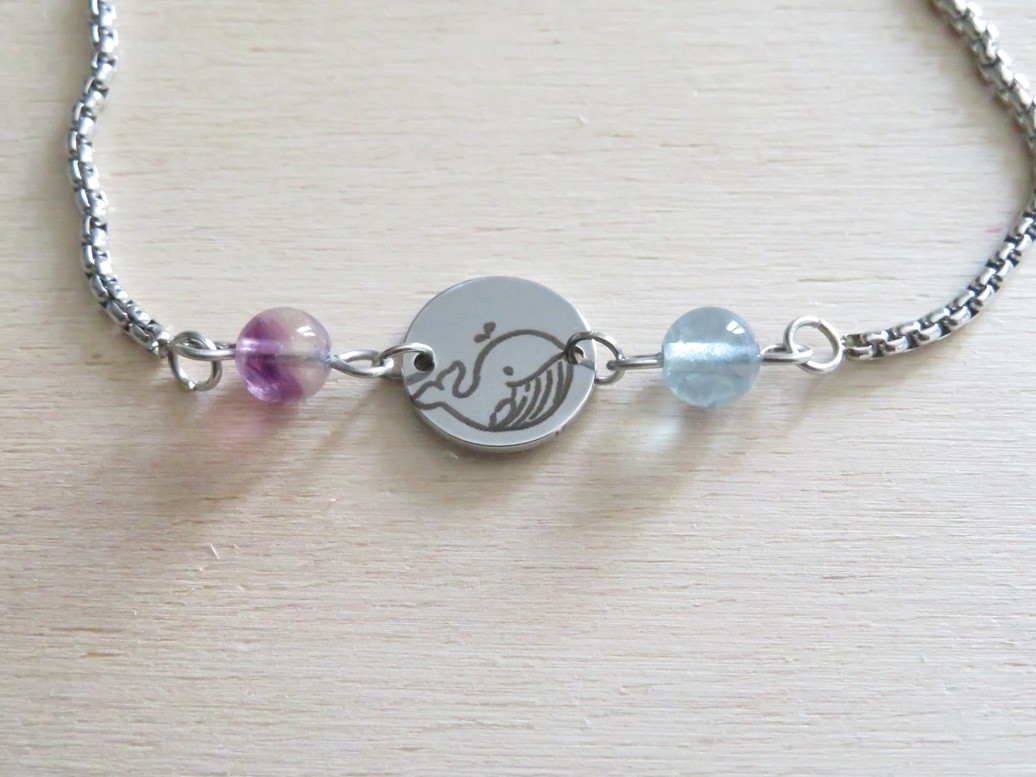 Petite médaille en acier inoxydable gravé d'une baleine