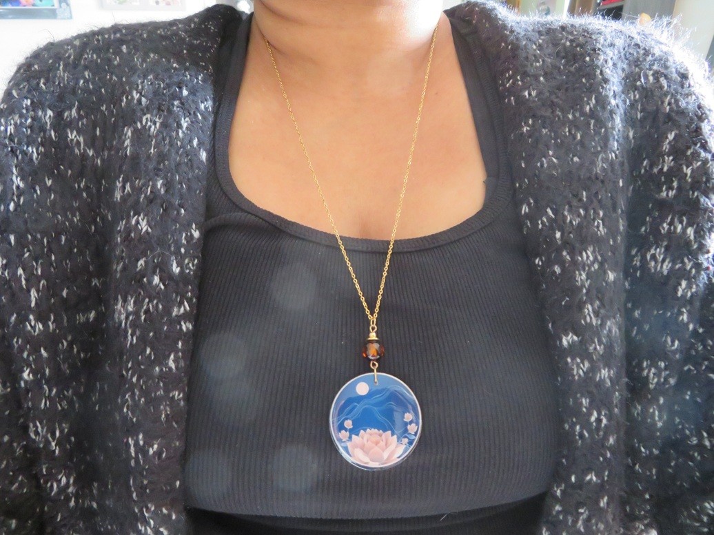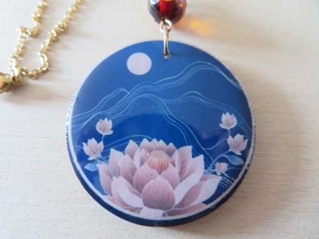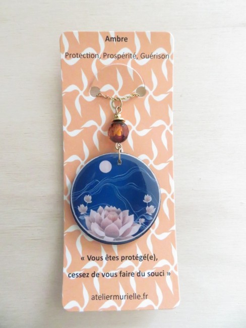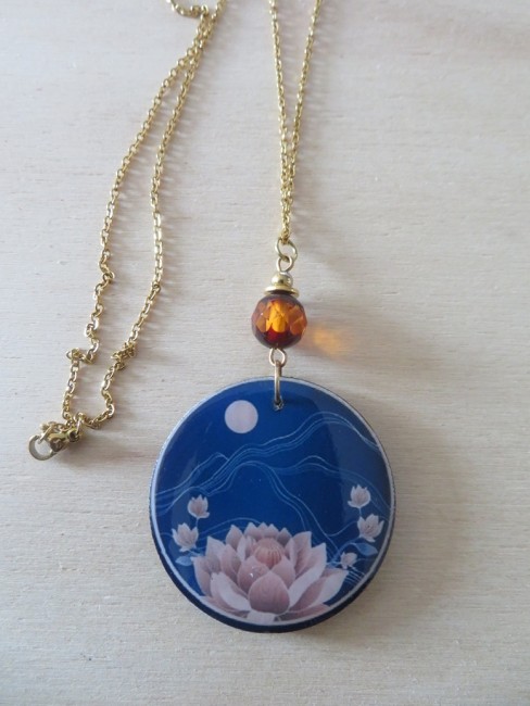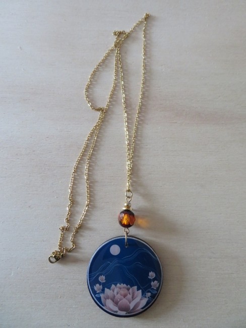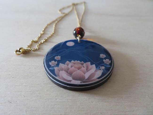 - Rond fait en bois et en résine avec un beau motif fleur de lotus - dimension : 3.8 cm