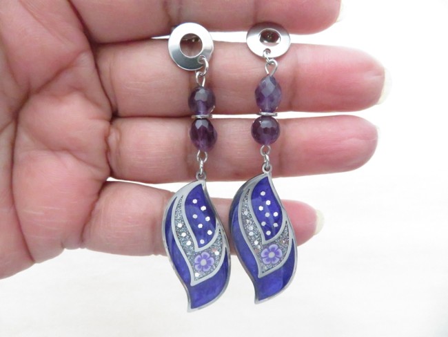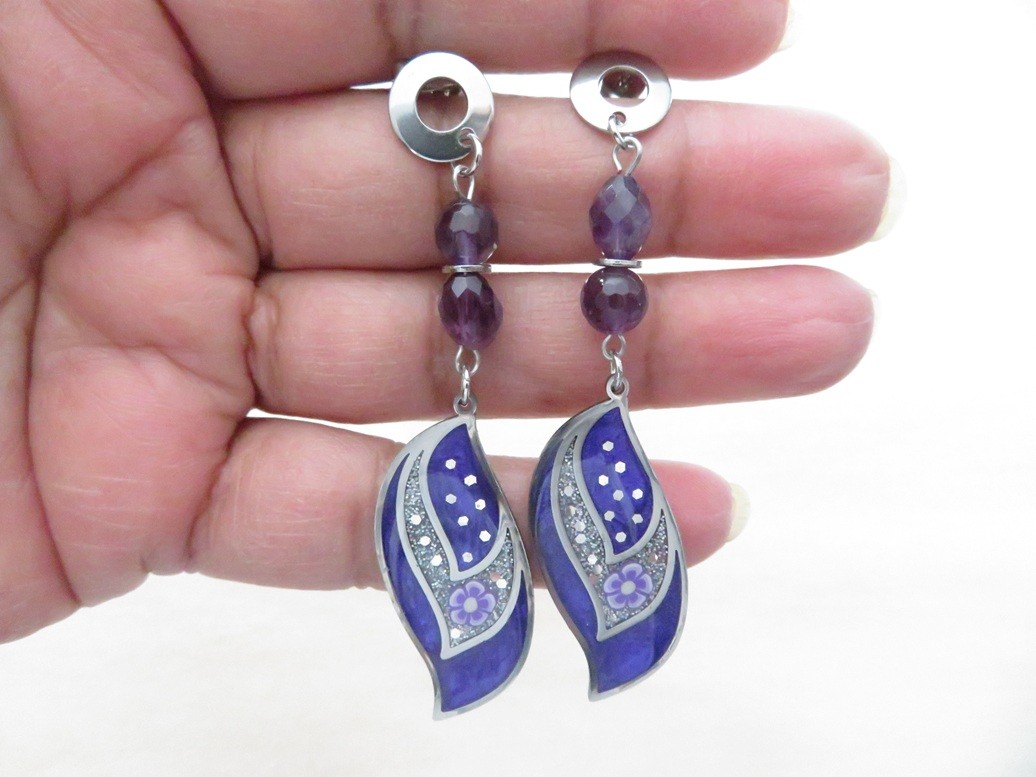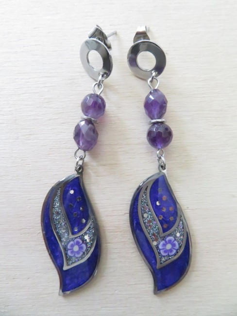 - Feuilles en acier inoxydable avec résine à paillettes argenté et violet foncé