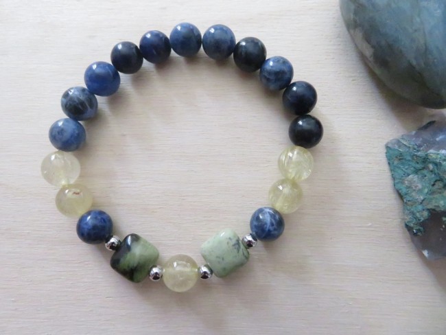 Bracelet émotion - sodalite, quartz rutile et serpentine