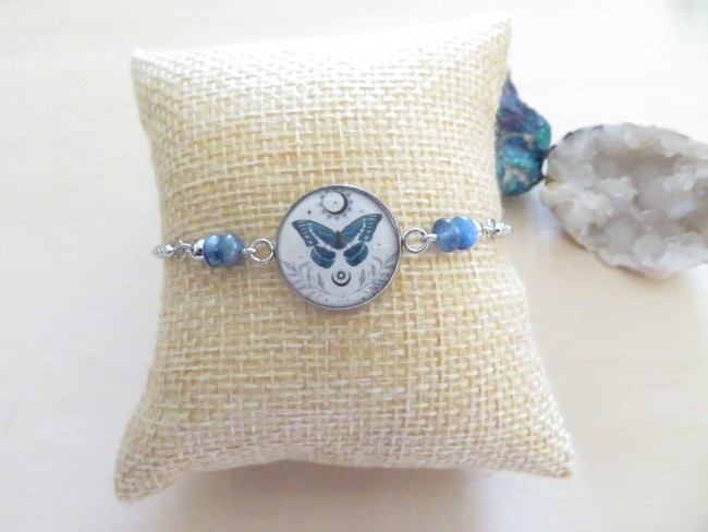 Bracelet Cyanite, bracelet en acier inoxydable avec nœud coulissant et cabochon papillon