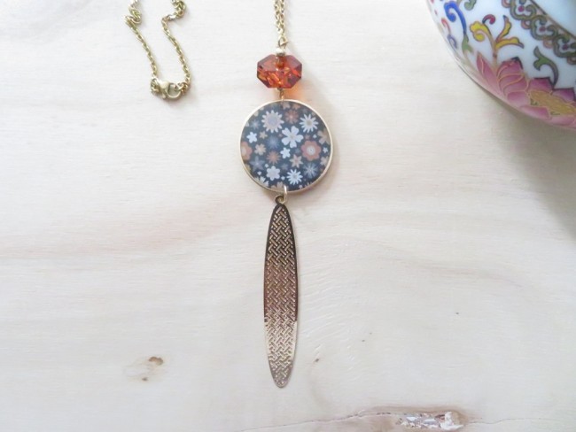 Collier Ambre de la Baltique et Pendentif fleurs liberty
