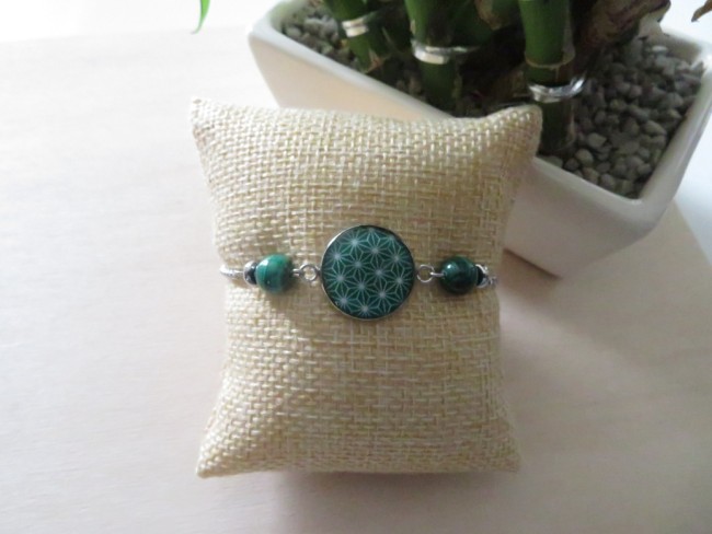 Bracelet Malachite, bracelet en acier inoxydable avec nœud coulissant et cabochon japonais vert émeraude