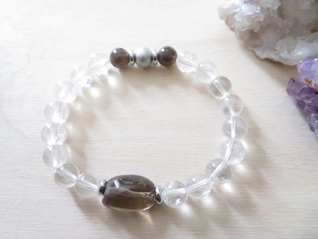 Bracelet méditation - cristal de roche, quartz fumé