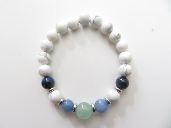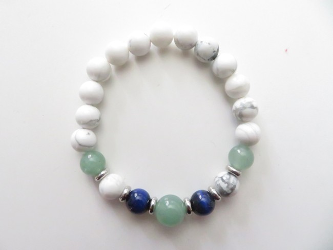 Bracelet pierres apaisantes - howlite, aventurine verte, aventurine bleue et œil de tigre bleu