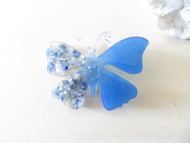 Broche papillon en résine et pierres naturelles Sodalite