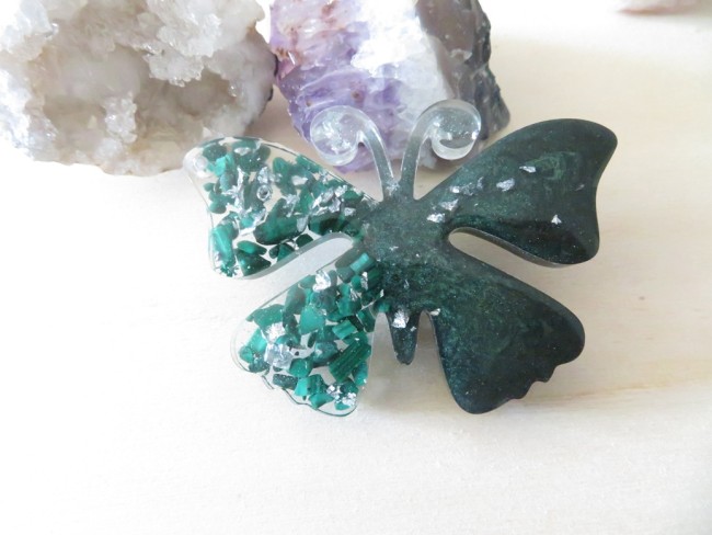 Broche papillon en résine et pierres naturelles Malachite