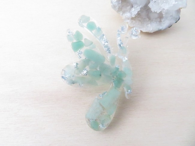 Broche papillon en résine et pierres naturelles Aventurine verte