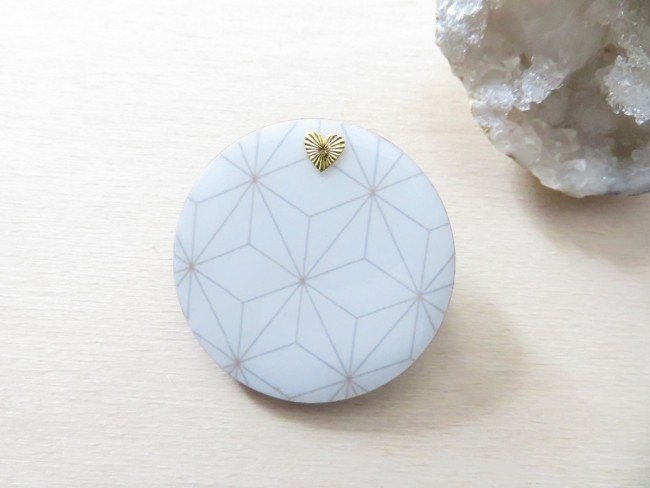 Broche ronde en bois motif japonais blanc