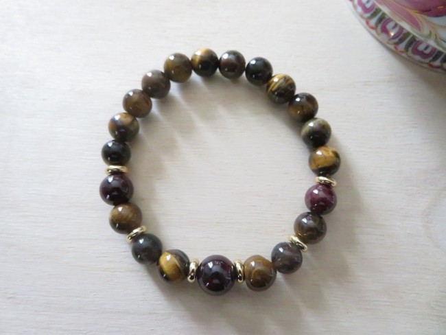 Bracelet stabilité - œil de tigre, grenat almandin, quartz fumé