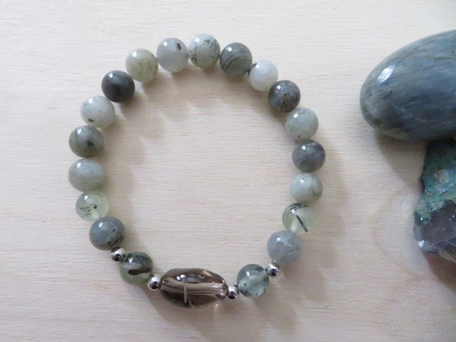 Bracelet émotion - labradorite, prehnite et quartz fumé
