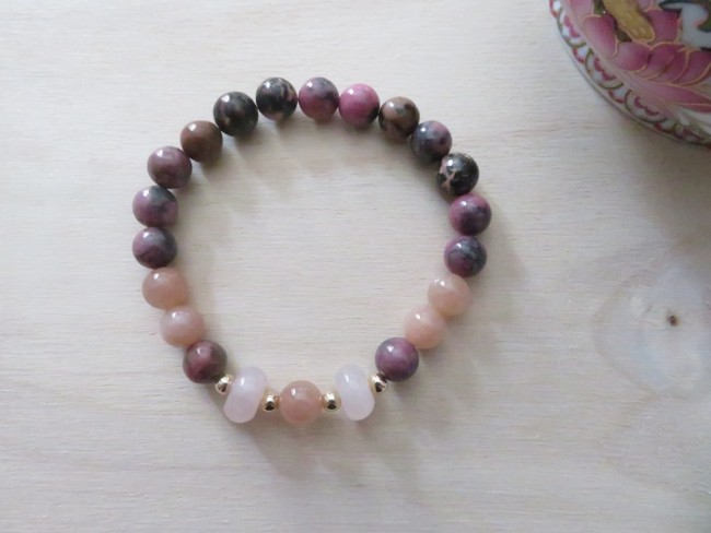 Bracelet émotion - rhodonite, pierre de soleil et quartz rose