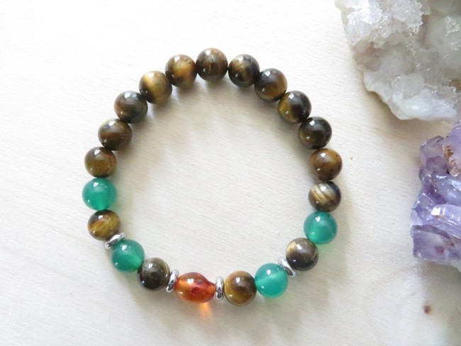 Bracelet courage - œil de tigre, agate verte, ambre de la baltique