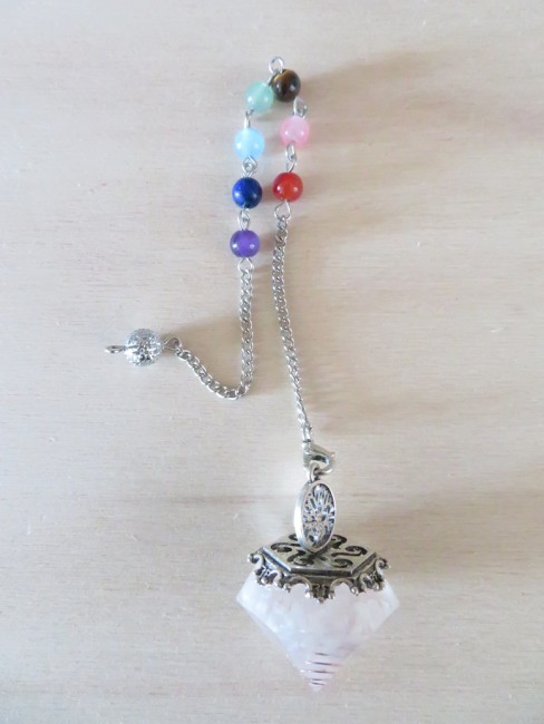 Pendule en pierres naturelles Quartz rose et perles 7 chakras