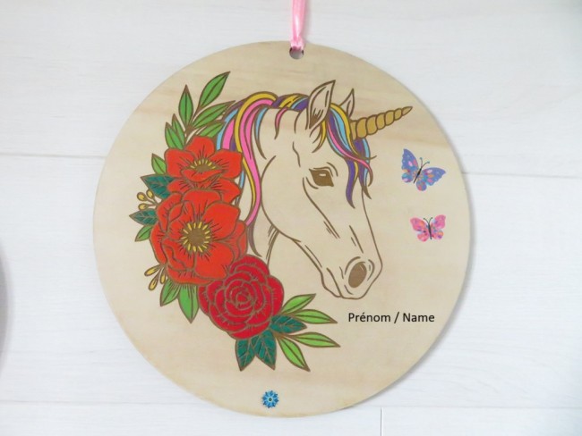 Décoration licorne fleuri, plaque murale à personnaliser par un prénom, décoration en bois chambre enfant, bébé
