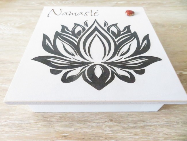 Grande boite en bois peinte décoration zen fleur de lotus