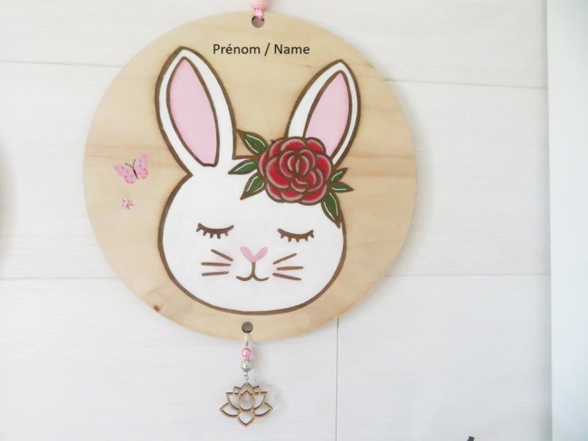 Décoration lapine, plaque murale à personnaliser par un prénom, décoration en bois chambre enfant, bébé
