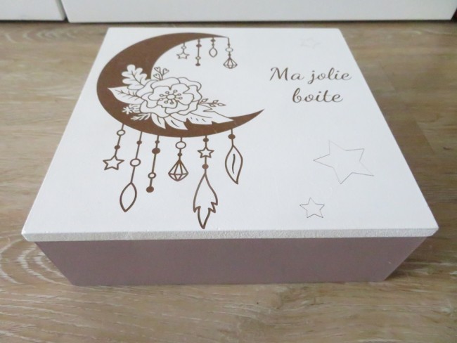 Boite en bois avec gravure phases de lune