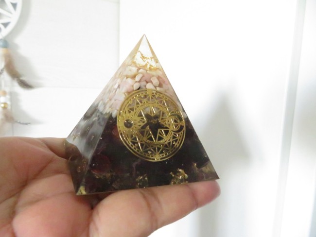 Orgonite pyramide Opale rose, Grenat, Symbole sacré