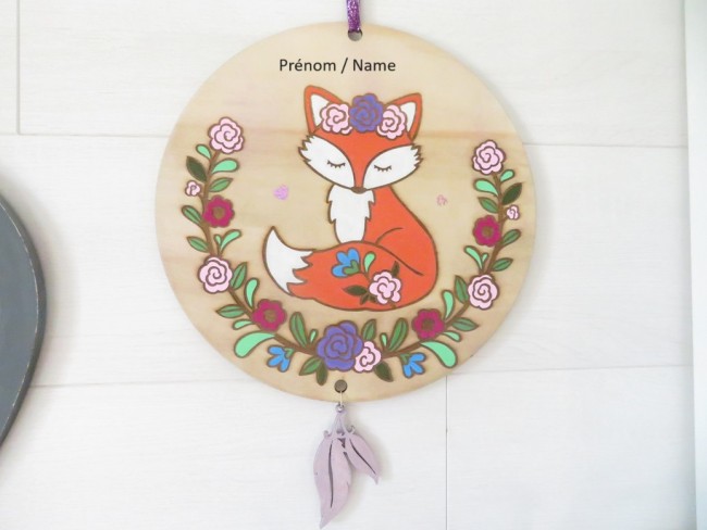 Décoration renarde fleuri, plaque murale à personnaliser par un prénom, décoration en bois chambre enfant, bébé