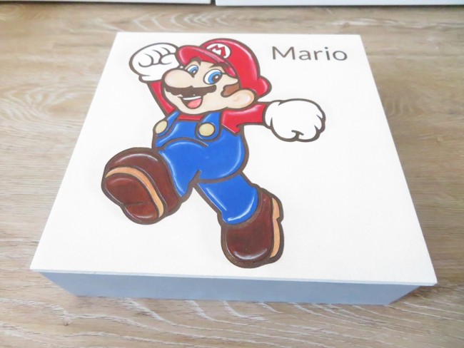 Boite en bois avec compartiments, décoration Mario